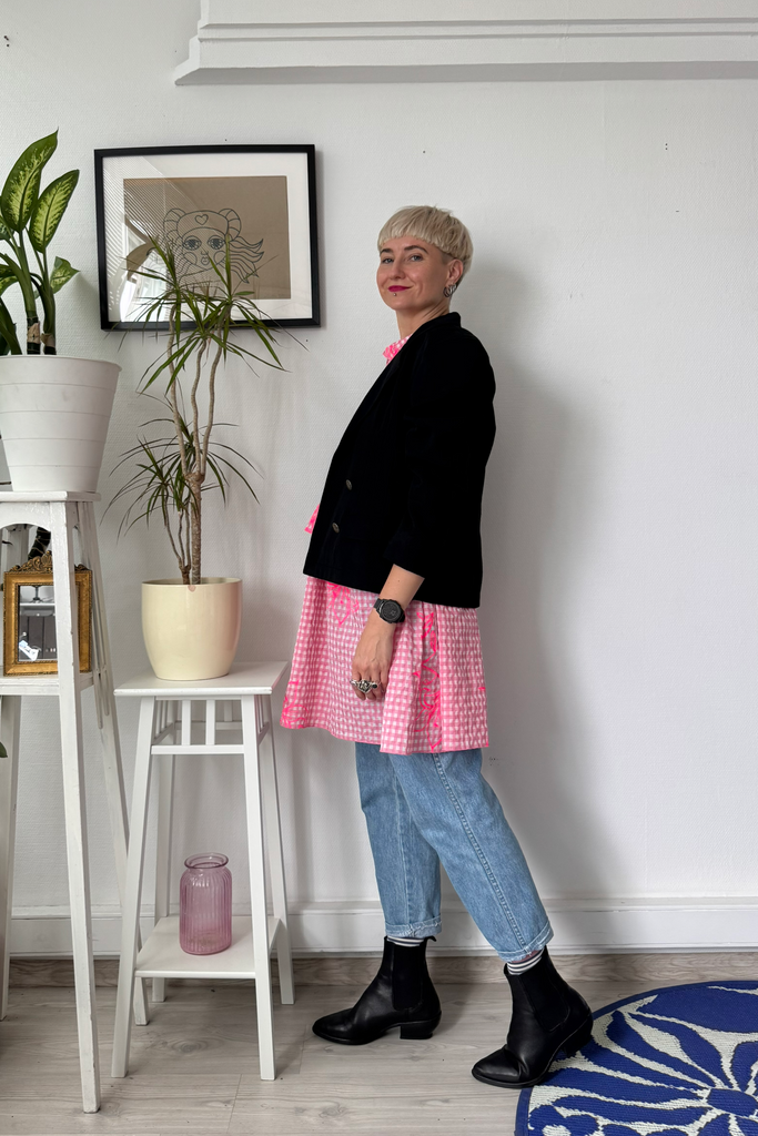 you can wear the dress as it is as a light summer mini dress, but during colder seasons it is a perfect layering piece.